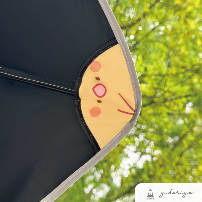 傘骨の先にはオカメちゃんのカバーがついていて安全♪内側から見えるデザインなので、楽しく使うことができます。
