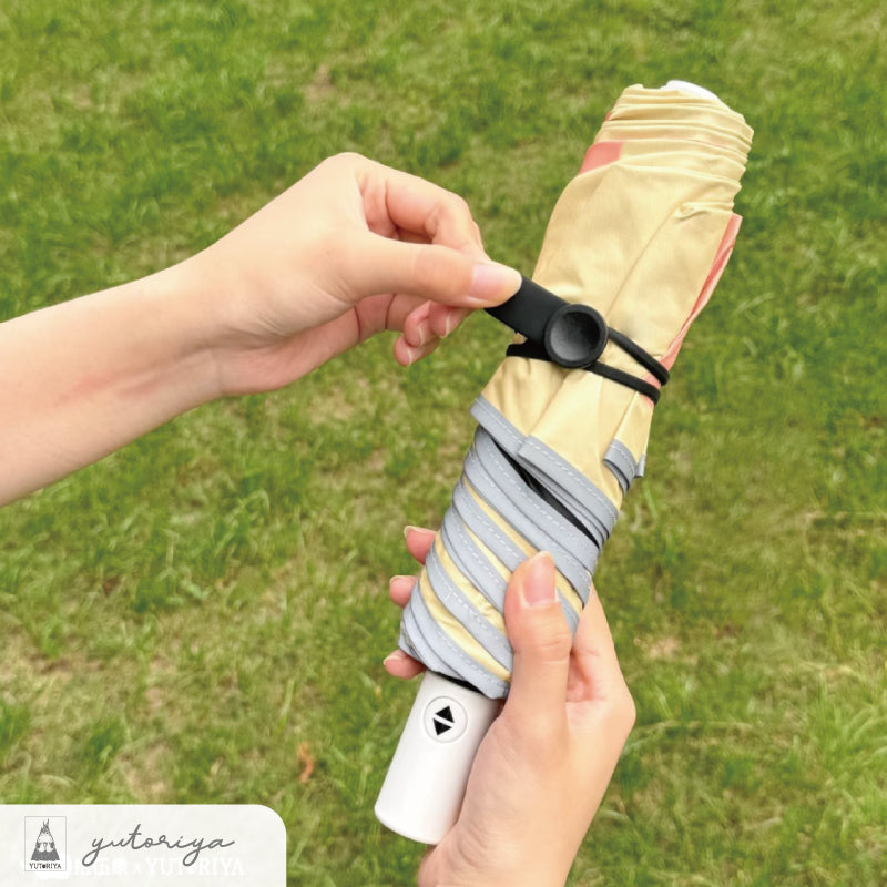 ・傘をまとめているバンドを外す時は、ハンドル部分がシャフトの根元まできちんと入っているか(ロックがかかっているか)ご確認をお願いします。