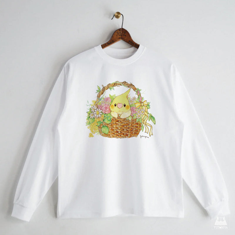 【通販限定】ロングTシャツ|オカメインコのフラワーバスケット