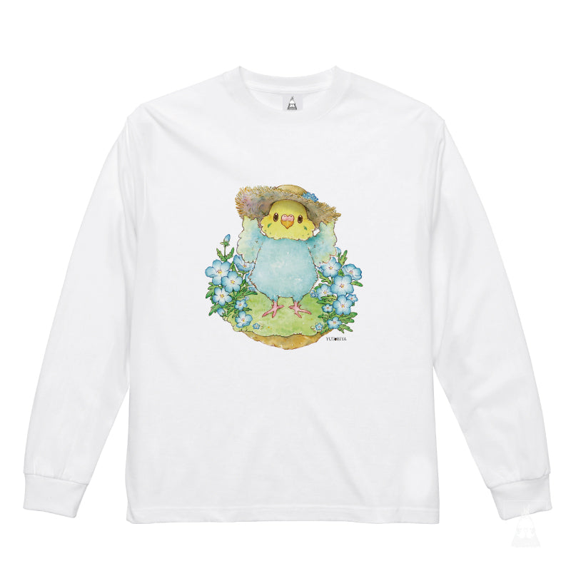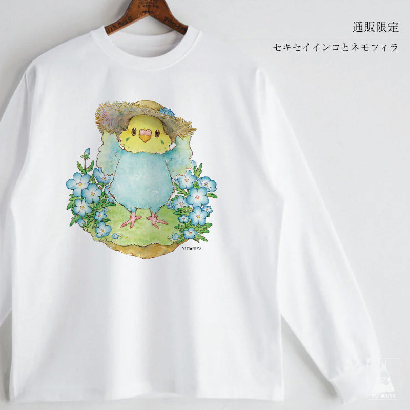 【通販限定】ロングTシャツ| セキセイインコとネモフィラ